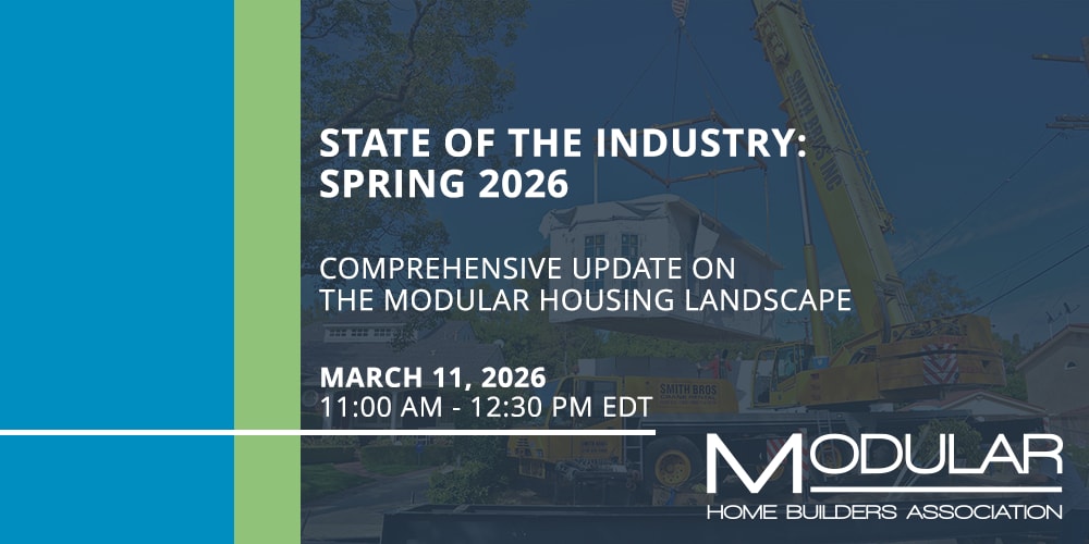 Join us for MHBA’s State of the Industry Webinar on Wednesday, March 11 | 11:00 AM – 12:30 PM Eastern for a timely and comprehensive update on the modular housing landscape.